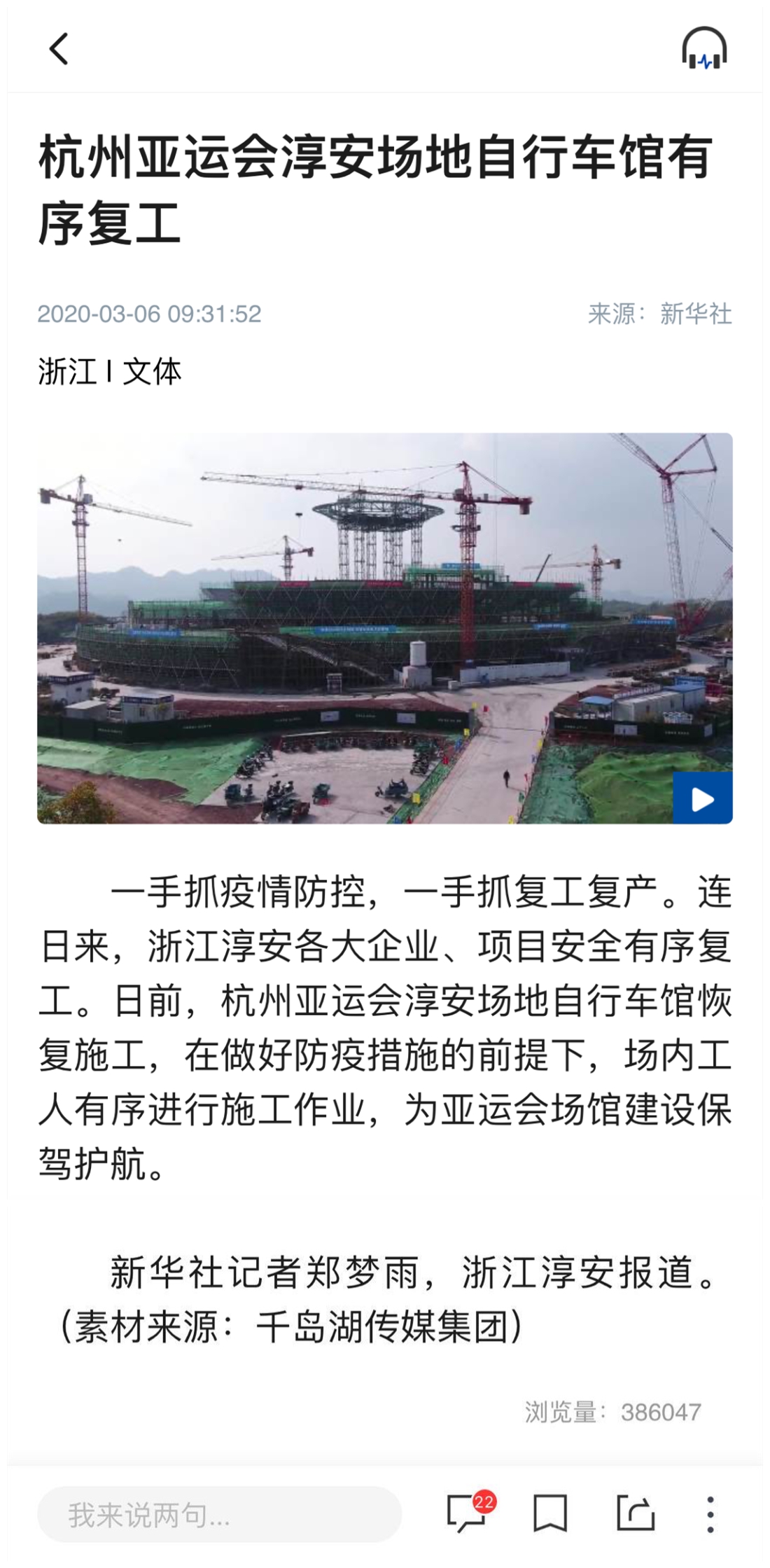 杭州亚运会淳安场地自行车馆有序复工