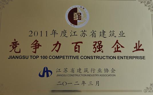 江苏省建筑行业协会刚刚结束的第六届一次会员代表大会上,对2011年度江苏省建筑业“双百强”获奖企业进行了表彰,江苏省建设集团公司荣膺“江苏省建筑业竞争力百强企业”称号。