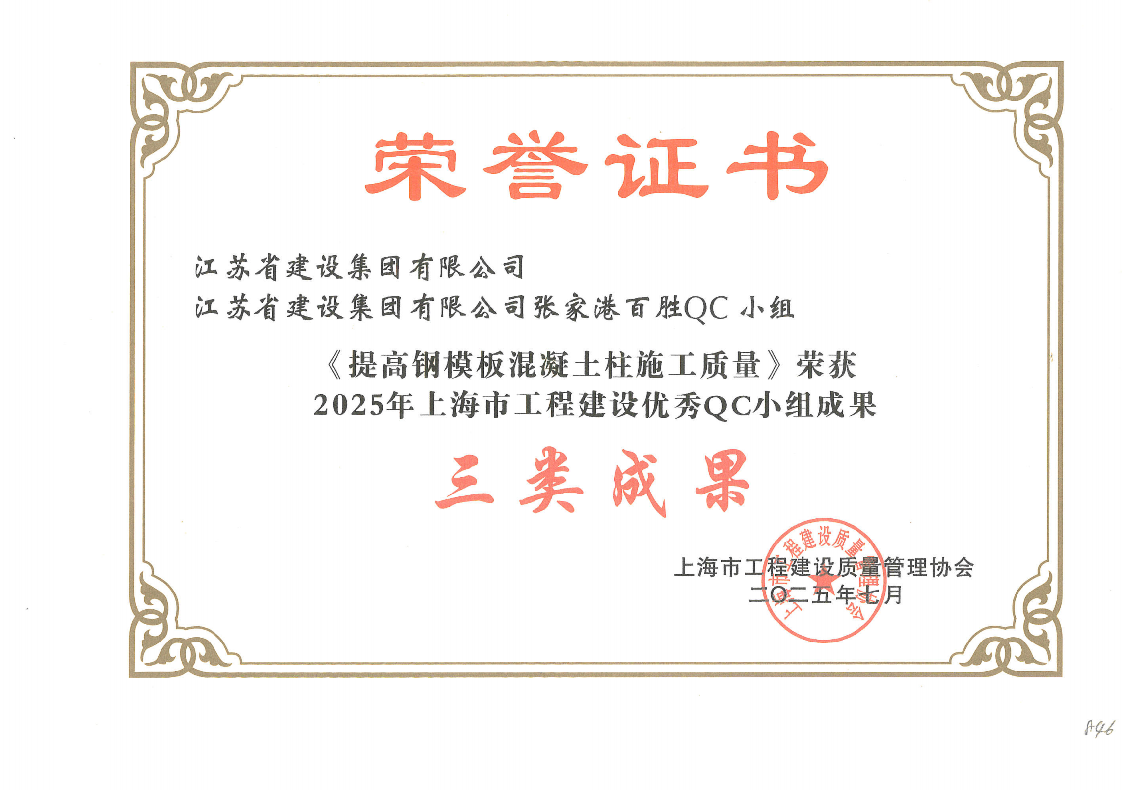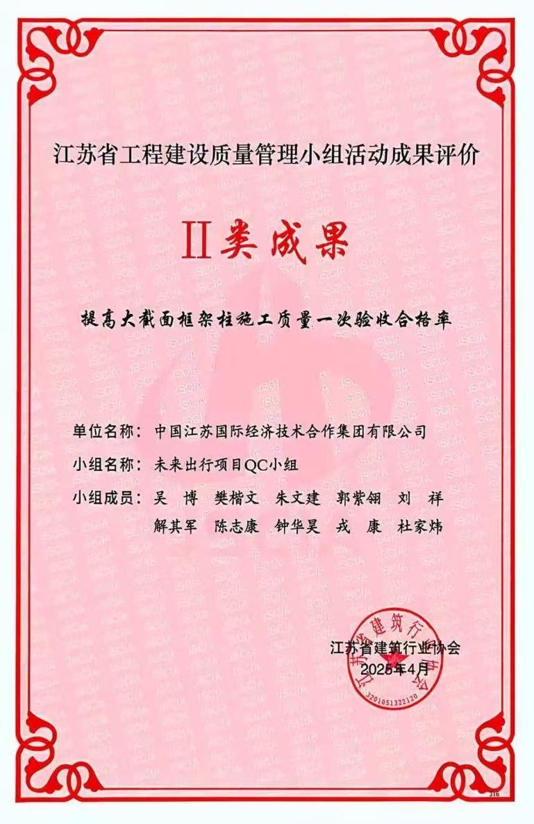 G74项目获得江苏省QC一类成果奖