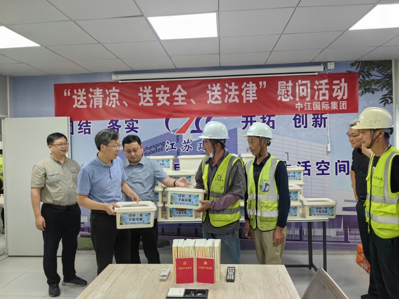 7月26日上午,集团党委副书记孙光能来到建设集团天津诺和诺德项目部开展夏季“三送”慰问活动,为炎热天气坚守在一线的干部员工送去清凉慰问品、法律安全手册和主题教育相关书籍,建设集团党委书记张永清、集团党群工作部部长于清、国内业务部部长朱海峰等陪同慰问。