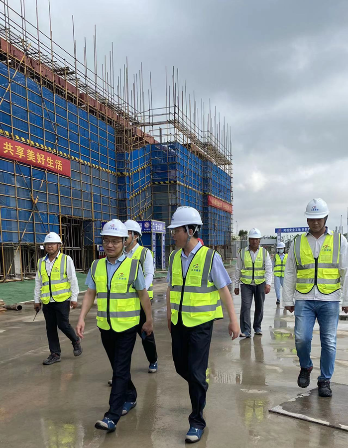 建设集团副总经理杨杰、质安部经理陈天途、经营部经理谢丹和江苏分公司总经理何勇等一行对无锡分公司捷捷微电子项目进行现场安全生产检查和工作指导。