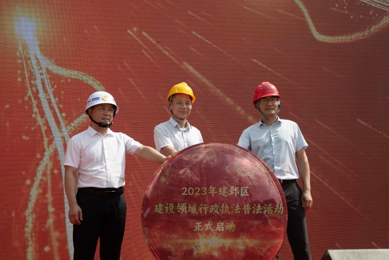 2023年8月24日,由建邺区建设局主办,建邺区江心洲街道办事处、建邺区建设工程质量安全监督站协办,江苏省建设集团有限公司承办的“建邺区建设领域行政执法普法活动启动仪式活动”在江苏省环保集团科技创新产业基地项目部举行。