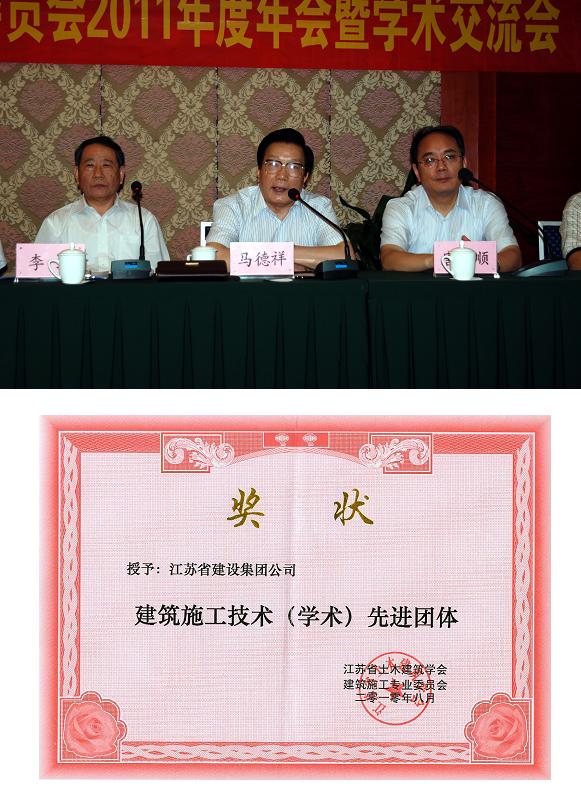 我公司荣获“建筑施工技术(学术)先进团体”奖,同时,在提交大会交流的452篇论文中,公司参加交流的《江苏省档案馆工程大吨位预应力悬臂钢桁架结构施工技术》等三篇论文分获一、二、三等奖。