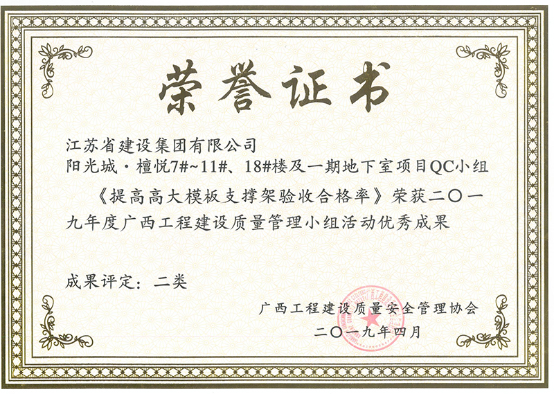 南宁阳光城·檀悦项目获得广西工程建设QC活动二类优秀成果