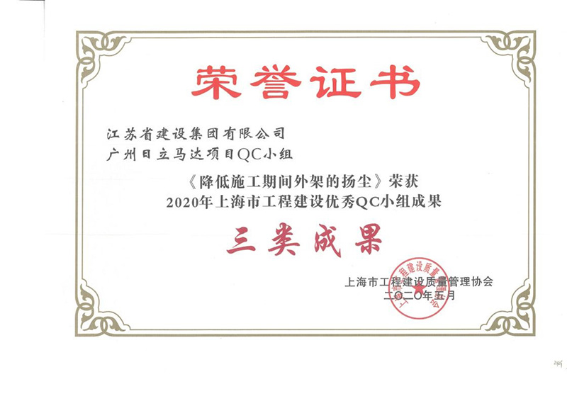 太仓博泽二期获得上海市QC二类成果奖