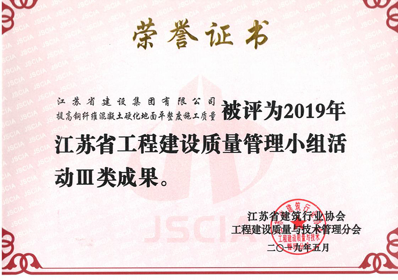 提高环氧砂浆地坪一次验收合格率获评2019江苏省工程建设质量II类成果奖