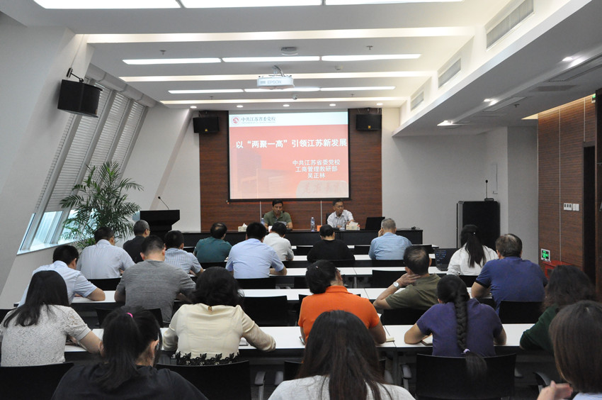 吴正林《以“两聚一高”引领江苏新发展》的授课,综合国际国内发展形势,分析了创新、富民、生态发展与社会稳定之间的联系,深入浅出地阐释了创新、富民发展战略的深刻内涵,强调创新是引领发展的第一动力,富民是实现全面小康的根本要求,要建设“强富美高”新江苏,必须解决地域发展不平衡问题,坚持发展成果共享,实现人民共同富裕。他根据国有企业特点,就如何抓住机遇,分步推进创新、富民发展方略提出了思考与建议。