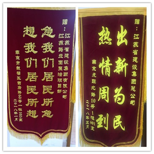 施工中,建设集团(中江一建)不仅严格遵循安全生产和文明施工要求,对于居民出现的问题也能做到及时反馈、有效处理,真正做好急民所急、解民所忧,获得居民赞誉。江苏路片区道路沿线立面整治工程项目部专业的施工建设,改善了居民的居住环境,提升了居住品质;虎踞里房屋整治出新工程项目部了解到虎踞北路一位居民房屋存在屋顶漏水的情况后,立即免费为其进行防水处理,解决了其生活难题。为表达谢意,居民纷纷送来锦旗,锦旗上 “热情周到、出新为民”、“想我们居民所想,急我们居民所急”的字句浓缩了居民对建设集团项目团队的感谢之情,同时也激励了公司在以后的工作中不仅要做好项目,还要心系群众,继续为百姓办实事、做好事。