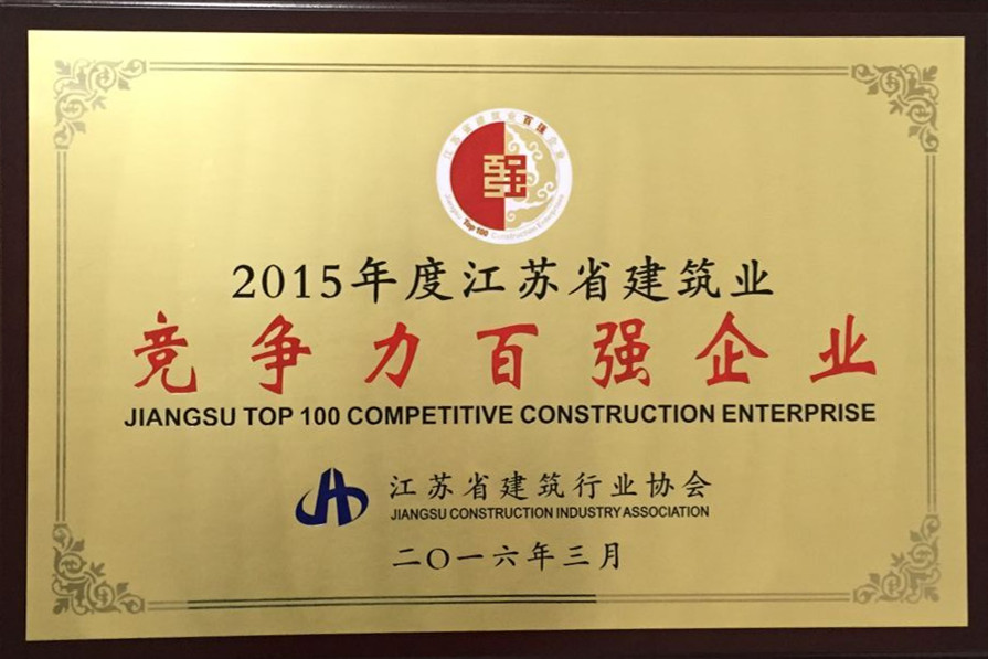省建设集团荣获2015年度江苏省建筑业竞争力百强企业称号