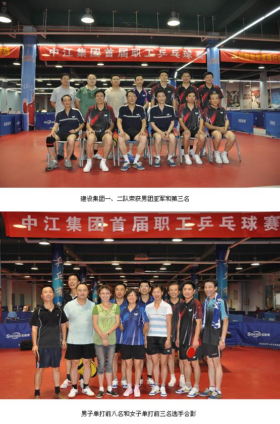 2011年9月8日至9日,由中江公司工会组织的首届职工乒乓球比赛在南京奥体中心举办。省建设集团派出9名选手组成的代表队,由建设集团工会副主席张冀明领队参赛。经过两天的激烈角逐,参赛选手团结拼搏,赛出了风格、赛出了水平,取得了男子团体亚军和第三名、女子单打第三名、男子单打第五、第七名的好成绩,展现了企业风采。建设集团因组织工作和比赛成绩出色,被授予本次大赛优秀组织奖。