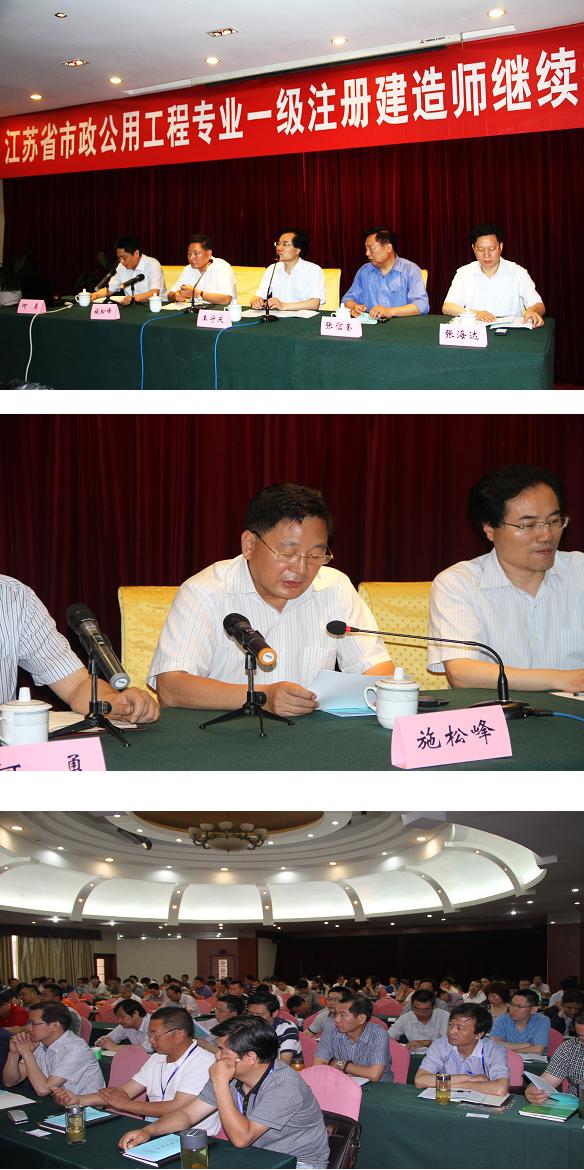 2013年6月7日上午,江苏省市政公用工程专业一级注册建造师继续教育第一期培训班开班典礼在南京京西宾馆举行。省住建厅城建处处长王守庆、省建设集团党委副书记施松峰,省市政工程协会副会长张信奎、省市政协会秘书长张海达出席开班典礼,省建设集团培训中心主任何勇主持开班仪式。