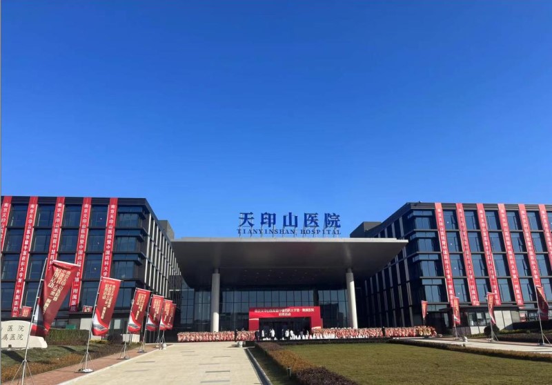 天印山医院为多层医用建筑,地上5层、地下2层,总建筑面积26.26万平米,其中地下室面积13.5万平米,主要功能为消化肿瘤中心、普通综合中心、妇科与综合肿瘤门诊、胸部肿瘤中心、医疗街连廊、地下人防及地下停车场等。医院投入使用后将进一步助力肿瘤患者的医疗服务和肿瘤新药研发。