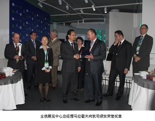 在10月29日俄罗斯馆举行的对外媒体发布会上,全俄展览中心总经理马拉霍夫先生对我公司在俄罗斯馆建设及维保服务中表现出的专业水平和综合实力予以高度评价。答谢会上,马拉霍夫先生又再次对我公司在俄馆建设及维保过程中所给予的大力支持和积极配合表示真诚感谢。俄罗斯展馆因其具有浓郁民族风格的外观造型和展览主题内涵博得了中外游客的青睐,累计入馆参观人数超过740万人次,顺利完成了184天的展览任务,其间从未因施工质量等原因闭馆过一天,各项设备始终保持正常运行,这是我公司及所有参建方的荣誉。全俄展览中心专门向我公司颁发了印有俄罗斯馆徽标的荣誉奖章以示感谢,姜建功副总经理也代表本公司回赠了具有象征意义的礼品,并期望双方今后能有更为广泛的交流和合作。