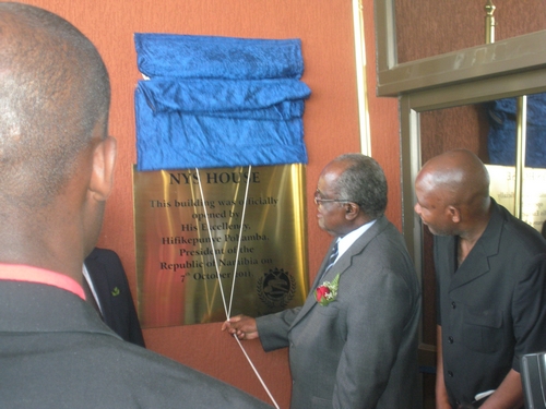 2011年10月17日上午,纳米比亚总统波汉巴及财政部长萨拉一行专程出席了由纳米比亚分公司承建的国家青年服务中心办公楼竣工庆典活动。波汉巴总统在发言中对该项目予以高度赞誉,认为这是他见过的质量最好、外形最美观的办公楼之一。随后,总统亲自为新大楼揭牌,并在其他官员的陪同下饶有兴致地进入楼内参观。青年服务中心委员长还专门向我公司表示感谢。