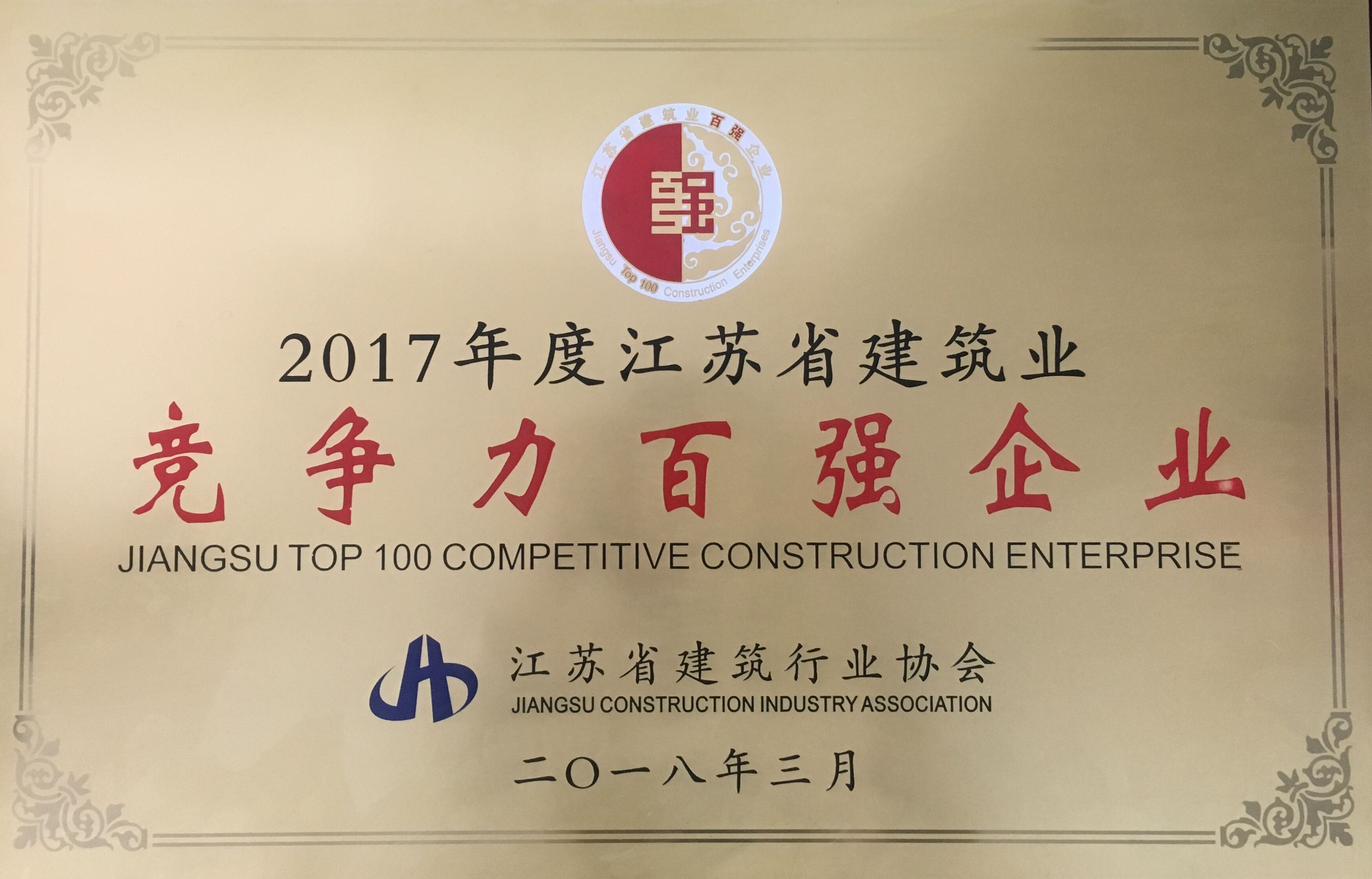 2018年3月28日,江苏省建筑行业协会召开2017年度江苏省建筑业“双百强”企业评价发布会,江苏省建设集团有限公司再次荣获“竞争力百强企业”称号。