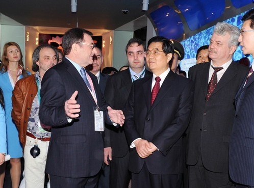 国家主席胡锦涛亲临俄罗斯展馆参观视察